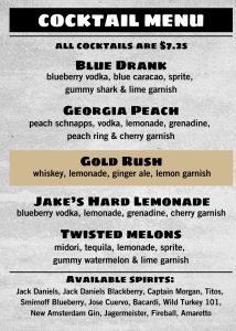 Our draft system will give you a beautiful pour that won’t fill your glass with foam. (Because how annoying is that?) Check out our AJ’s beer menu to see which drafts, cans, and bottles we’re carrying.